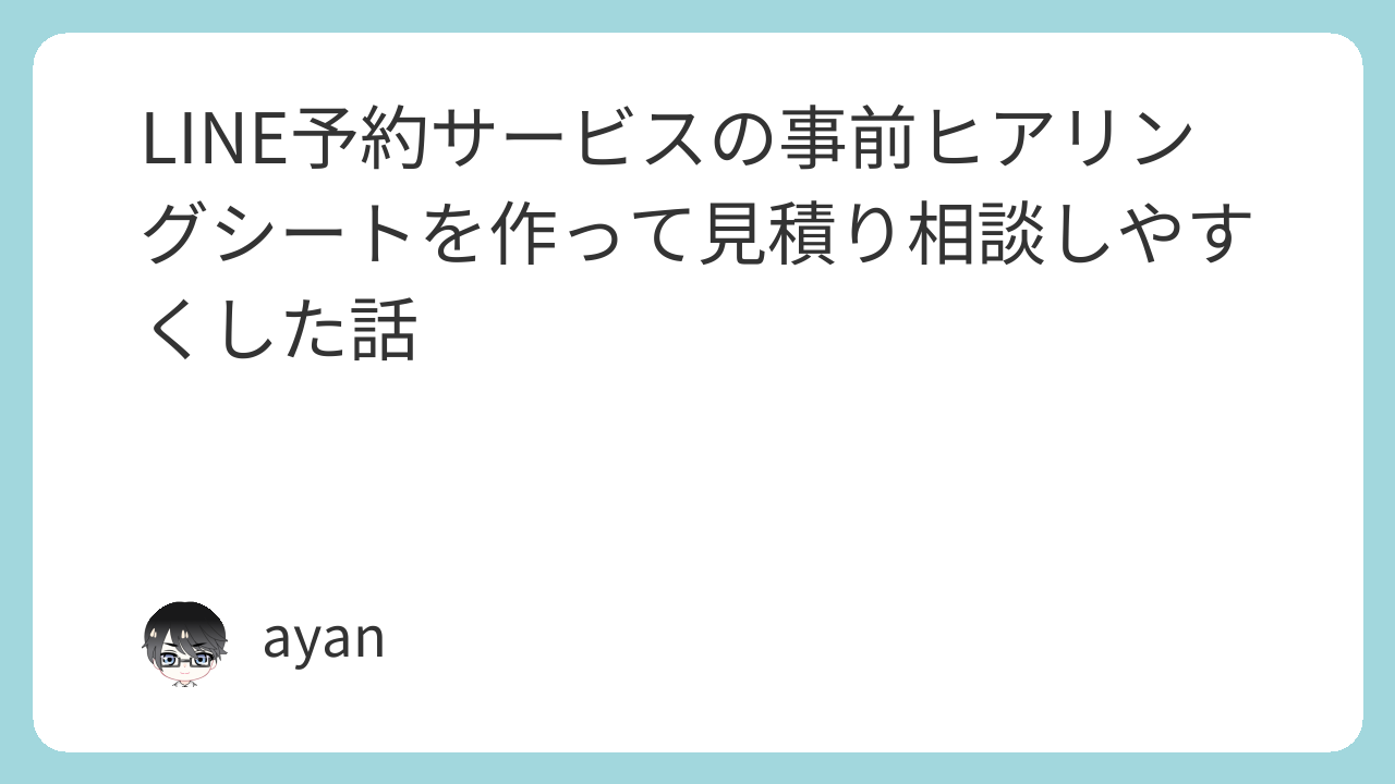 今回はタイトル通り、私が運営しているLINE予約サービスにご相談頂く際に便利な「事前ヒアリングシート」をご用意したのでその紹介をさせて頂きます。
