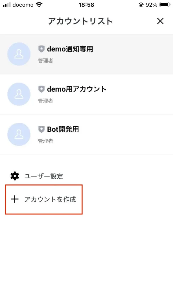15.こちらでも「アカウントを作成」でアカウントを増やせます。