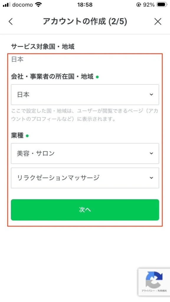 10.「ビジネスアカウント」を選択
