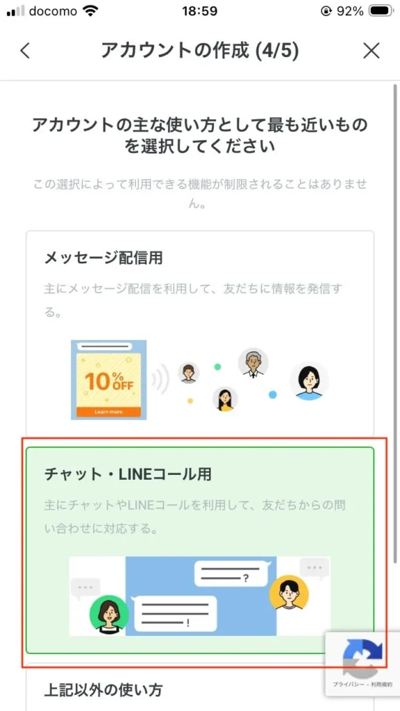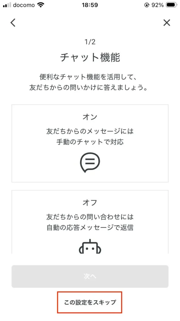 ↑ここも後から変えられますがとりあえずチャットで。