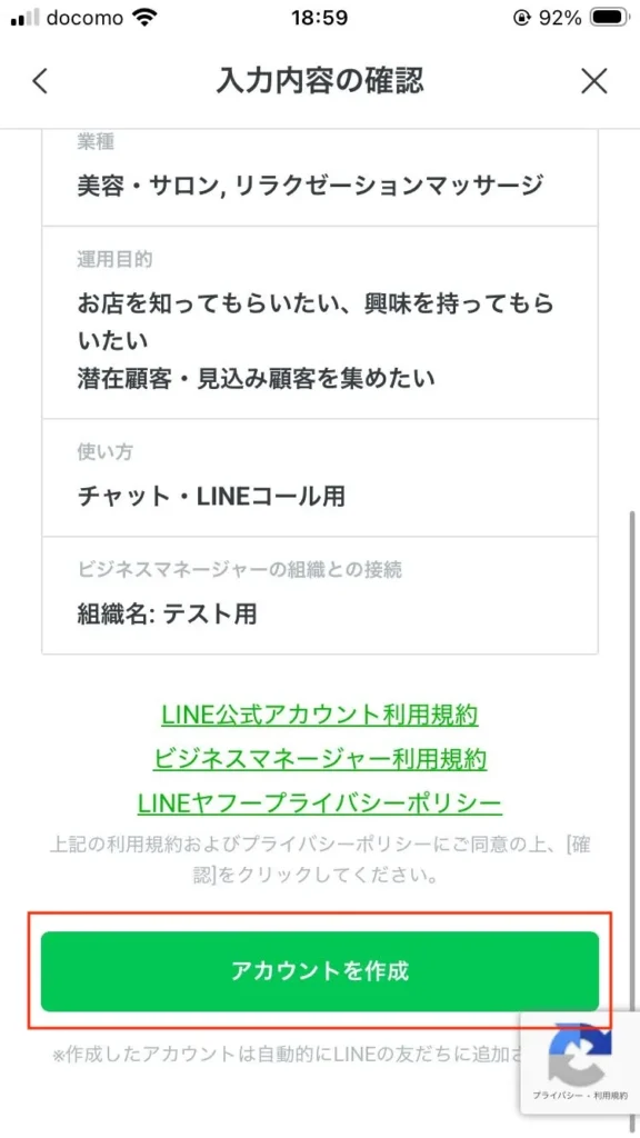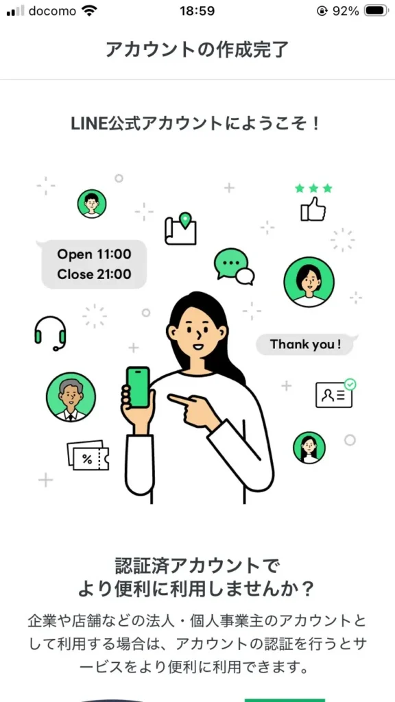 以上で、LINE公式アカウントの作成は完了です。お疲れ様でした。