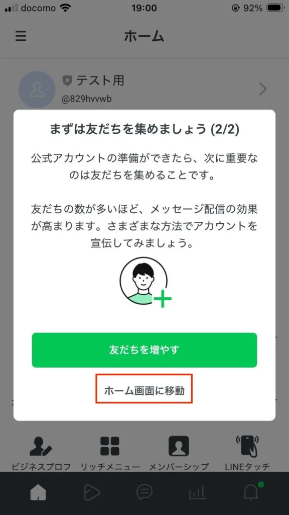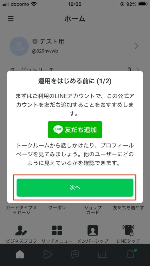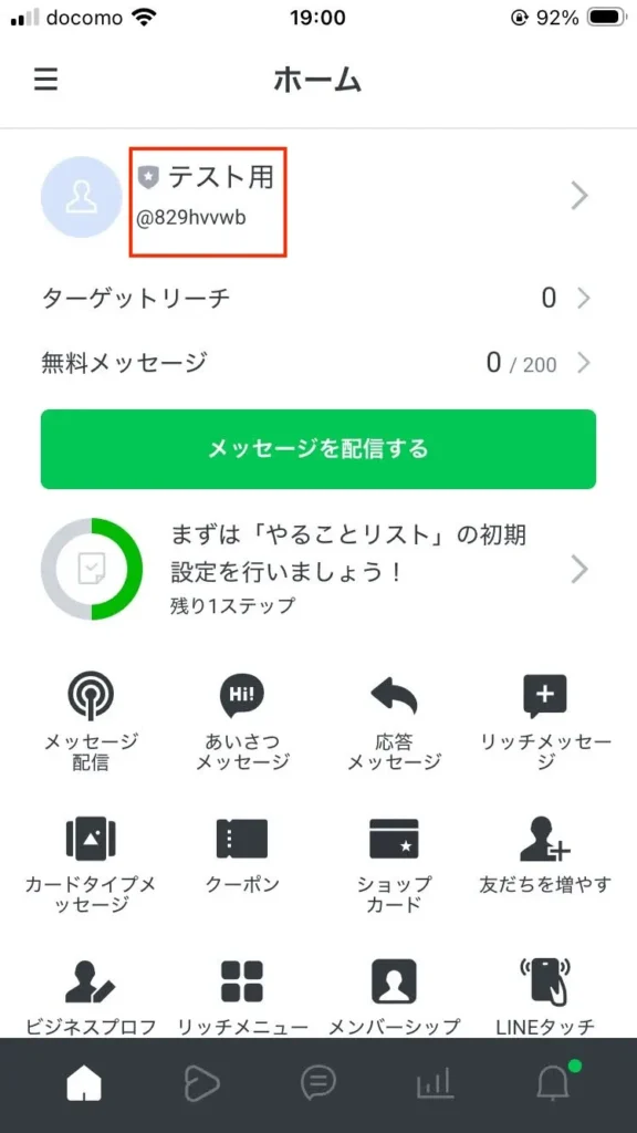 27.「テスト用」というLINE公式アカウントができました。