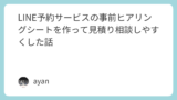一人サロン・個人サロン向けに、LINE上で自動予約受付が可能なチャット予約システムを開発・運用しています、ayan(えーやん)と申します。