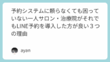 一人サロン・個人サロン向けに、LINE上で自動予約受付が可能な予約システムを開発・運用しています、ayan(えーやん)と申します。